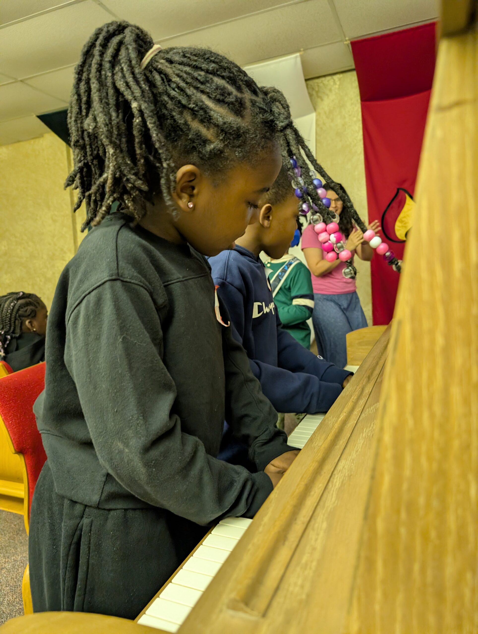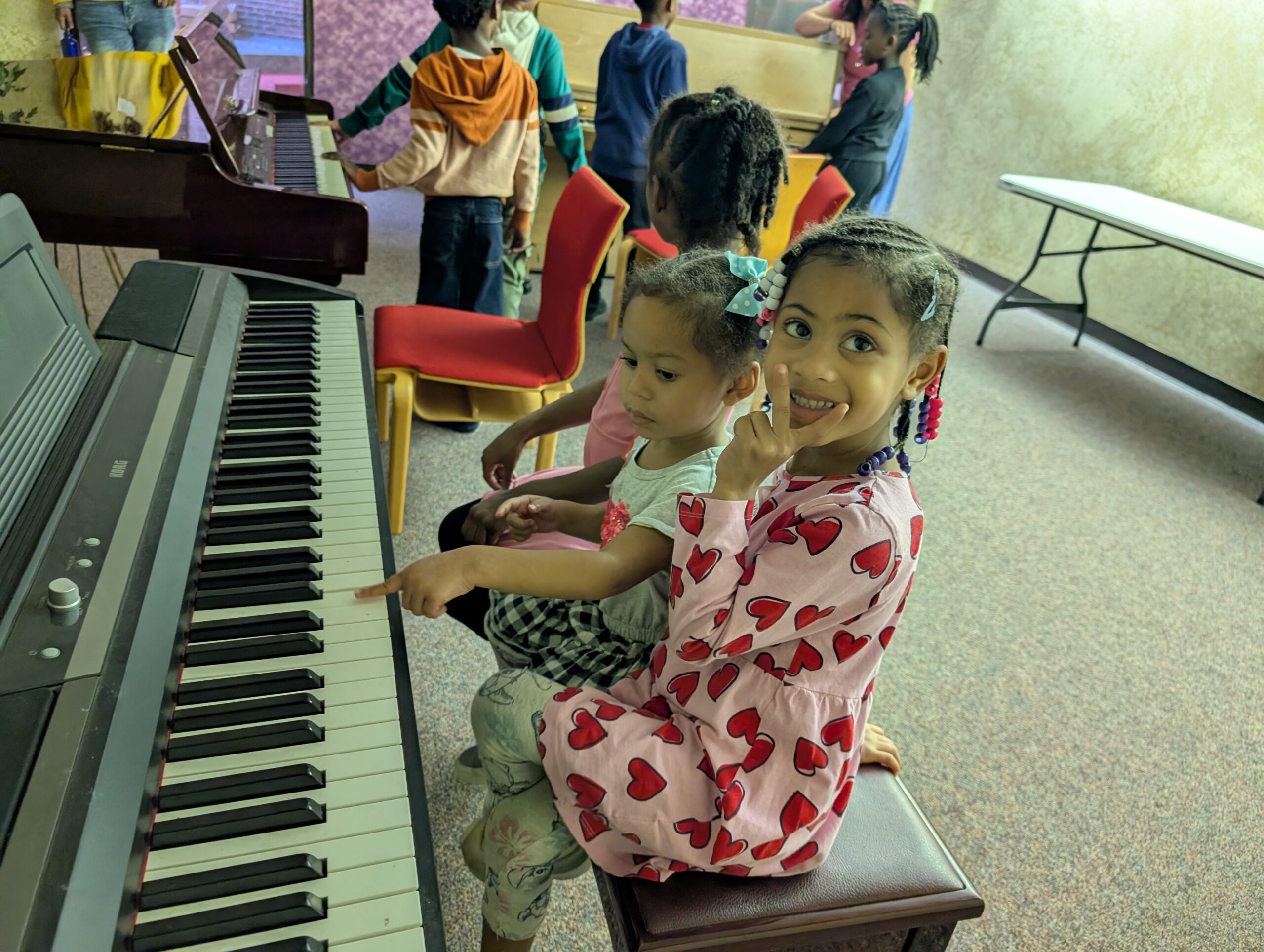Preschoolers to teens receive free piano lessons, general music instruction, rhythm training, academic support, and homework help.